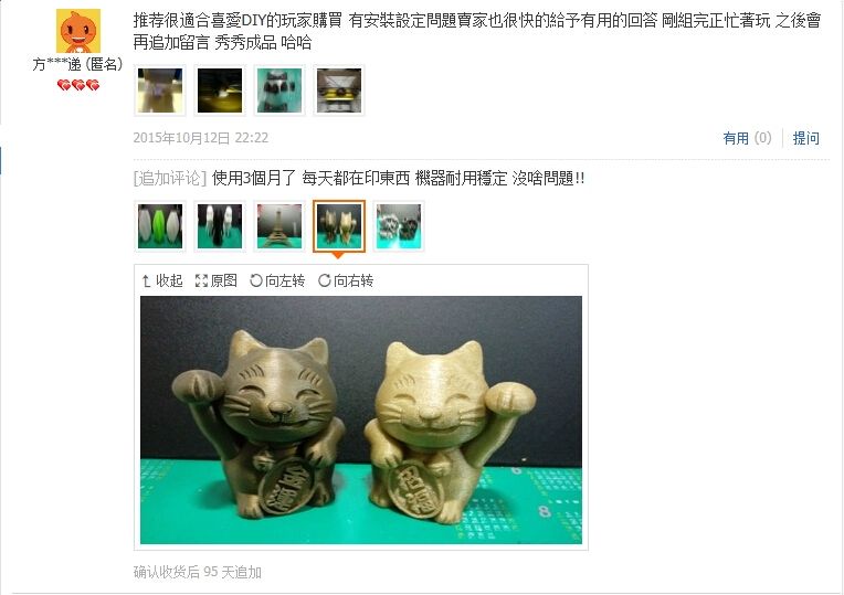 Note: Most of our products are shipped quickly. Some items are not in stock and are made to order, which requires factory scheduling and may cause a shipping delay. However, for the vast majority of products, the delivery time is much shorter than expected, and most of customers who place orders will usually receive their goods ahead of the scheduled timeframe.Related technical parameters: Power supply: AC110V--240VPrinter consumables: Applicable1.75mmABS/1.75mmPLA(Standard) Printer nozzle:0.4mm(Standard) Print area:200mm*200mm*170mmMachine size:410*385*528MM(Including material rack) Operating system:Windows/MacData connection:MiniUsbInterface offline printing:SDCard (optional) Kits will be delivered randomly2-3metersABSorPLAconsumables Print suitable for the crowdDIYenthusiasts model enthusiasts education Factory sample making Reprap Prusa Mendel i3The frame is processed by a high-precision laser engraving machine with high precision, easy to manufacture, and suitable for3DPrint enthusiasts buy and assemble, and some parts are made from3DThe printer prints it out and the material isPLA/ABSSince it is not integrally formed with a special mold, printing requires support assistance (the support needs to be removed before installation),Plastic parts will shrink and there is a slight error. When installing, you can use tools such as a knife or sandpaper to handle them appropriately. Due to the large variety of accessories, you must follow the installation instructions when installing. If you do not follow the instructions, the parts will result.